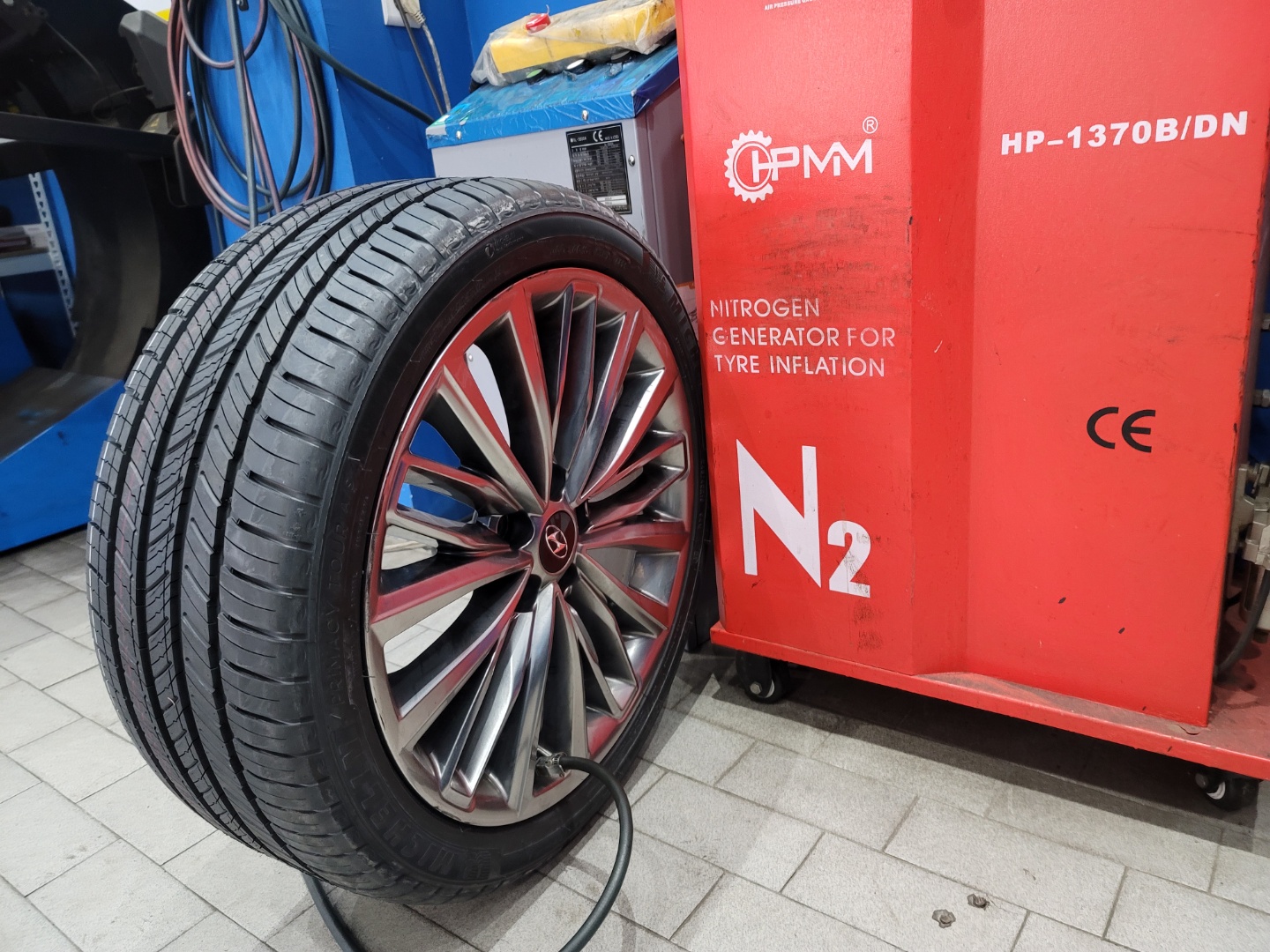 적정 공기압을 질소를 이용하여 주입해줍니다.