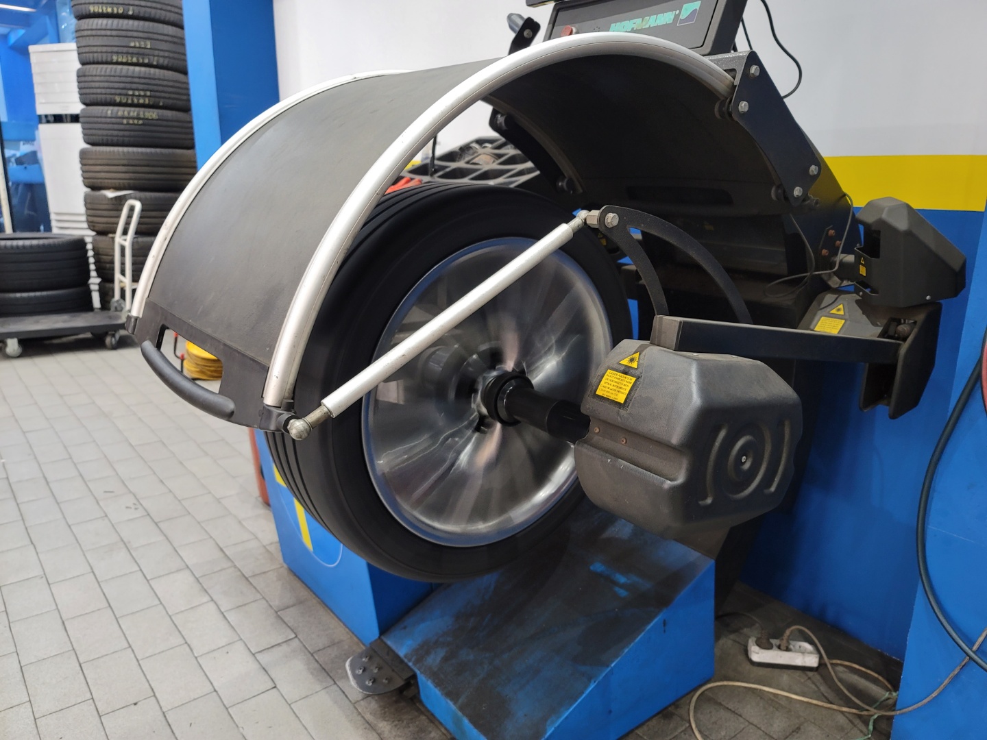 로 휠에 결합된 타이어의 균형 상태를 맞춰