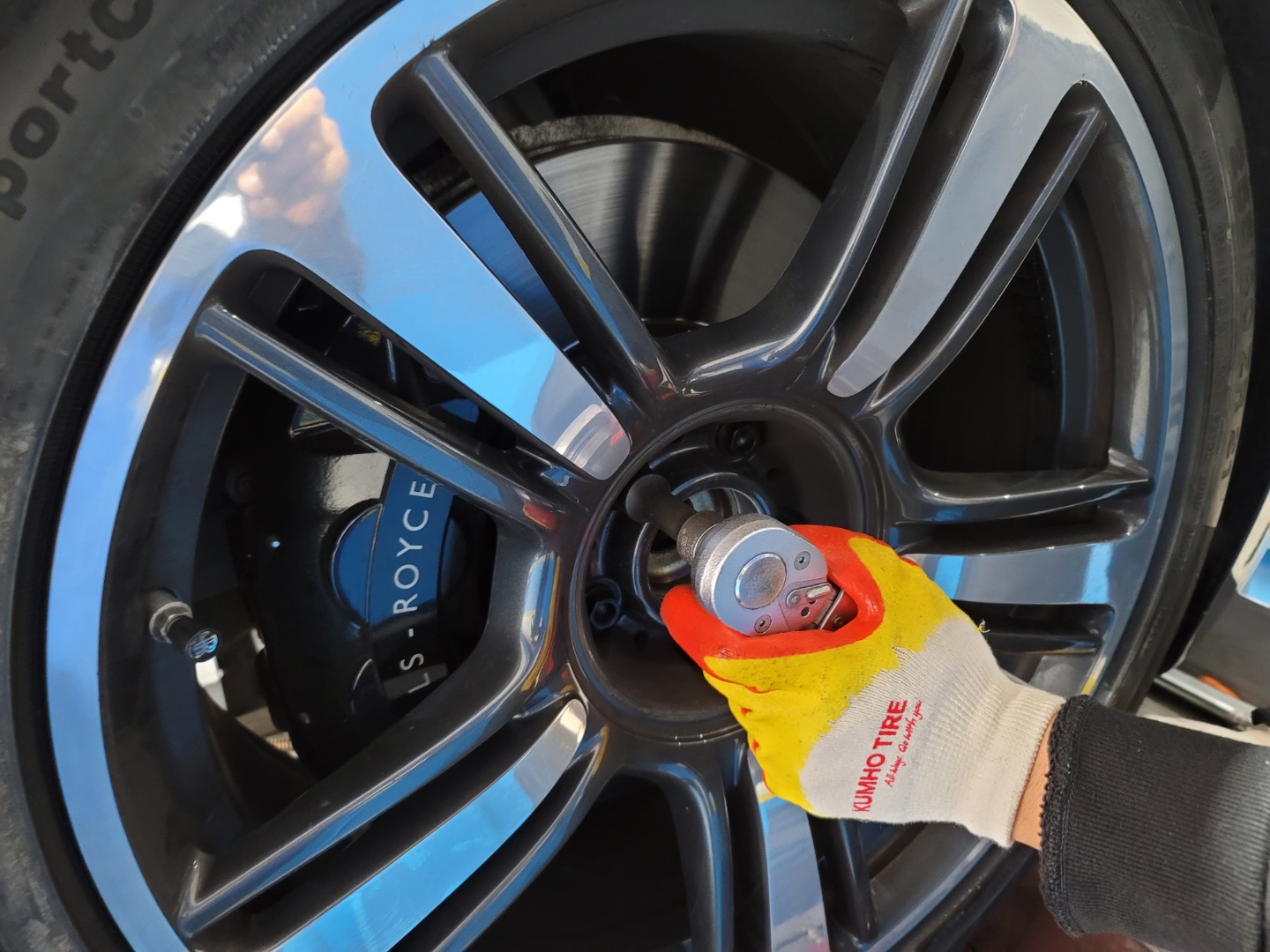 작업내용 : 롤스로이스 레이스 전륜 2본 신규 장착 및 휠 얼라인먼트 조정.