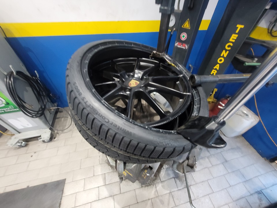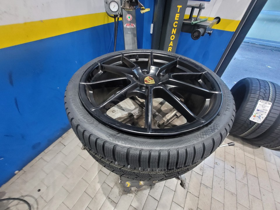 탈착이 완료된 휠에 미리 준비한 컨티넨탈 윈터 타이어를