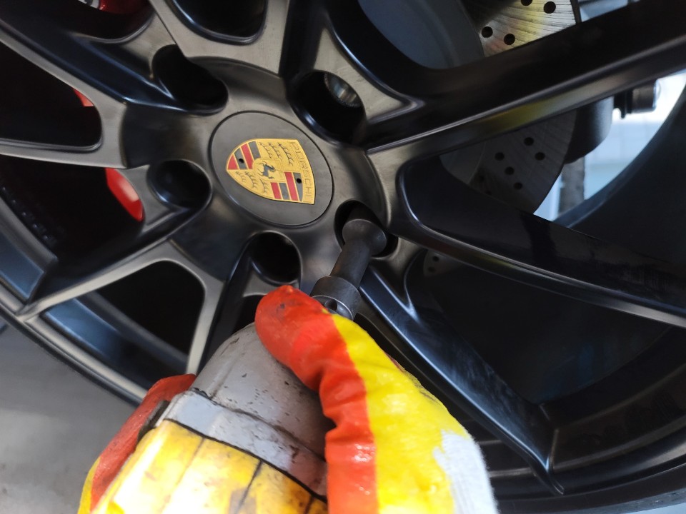 다음 휠 타이어를 손상에 주의하며 장착을 해줍니다.