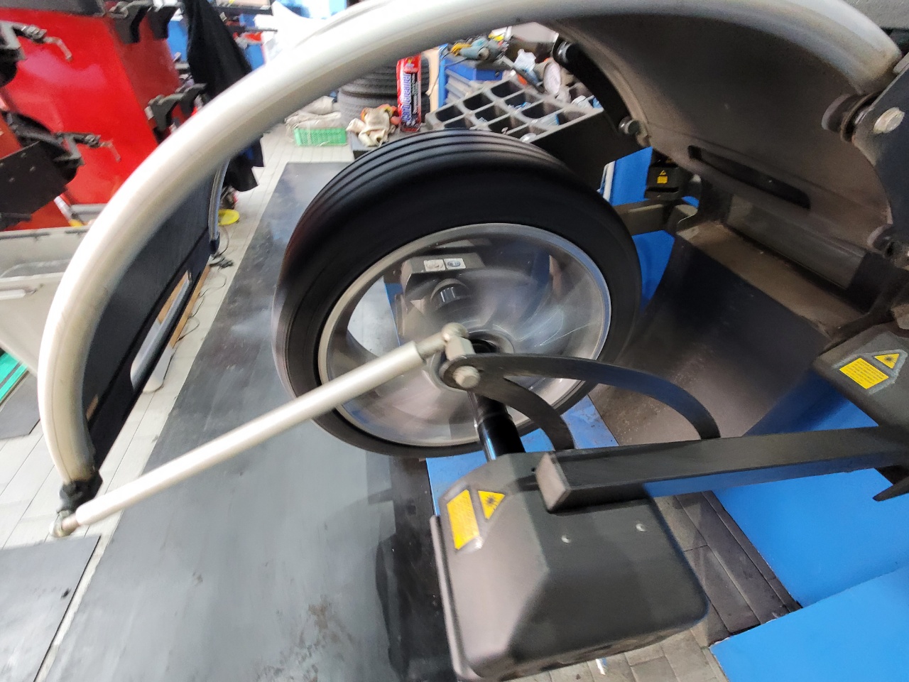기존 헌 타이어를 안전하게 탈착 후 미리 준비한 PS4S 타이어를