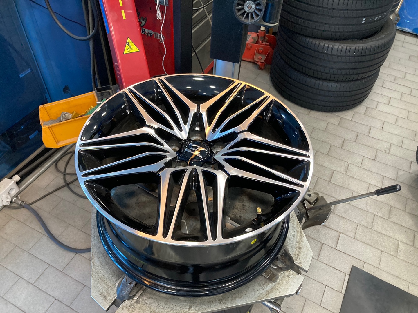 새 타이어를 조심스럽고 흠집 따위는 없이 장착을 해줍니다.